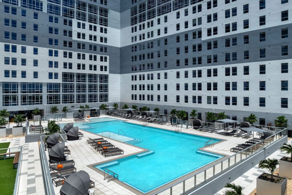 Terrazul Miami is where student housing takes on a whole new dimension. Redefining the student living experience, our amenities are as grand as our building and our apartments as sleek as they come. Join a vibrant community of students near FIU, where thriving is not just a possibility, but a way of life.